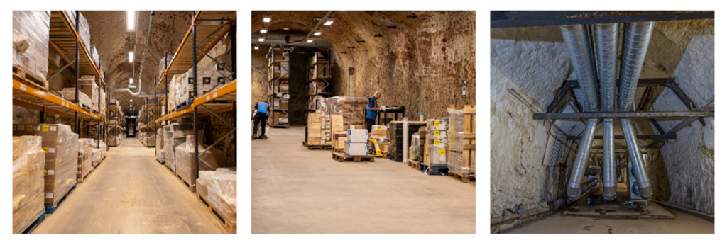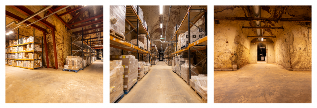 It has underground tunnels some three and a half miles long, and LCB have spent the last three years installing ideal temperature and humidity regulator devices, gentle lighting where necessary, and easy to find and access storage racks for their customers. Temperatures are constant at 14-15 degrees centigrade and humidity at 72-76%.